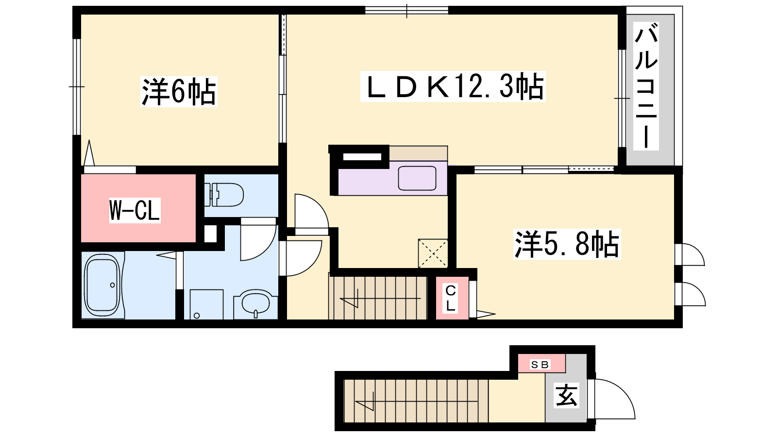 - LDK12.3帖、洋室6帖、洋室5.8帖