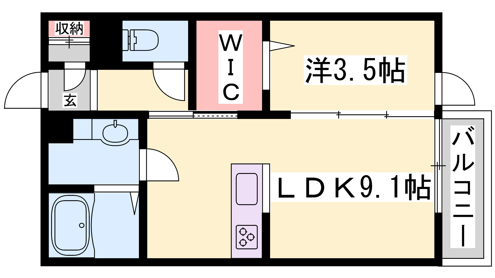 - LDK9.1帖、洋室3.5帖