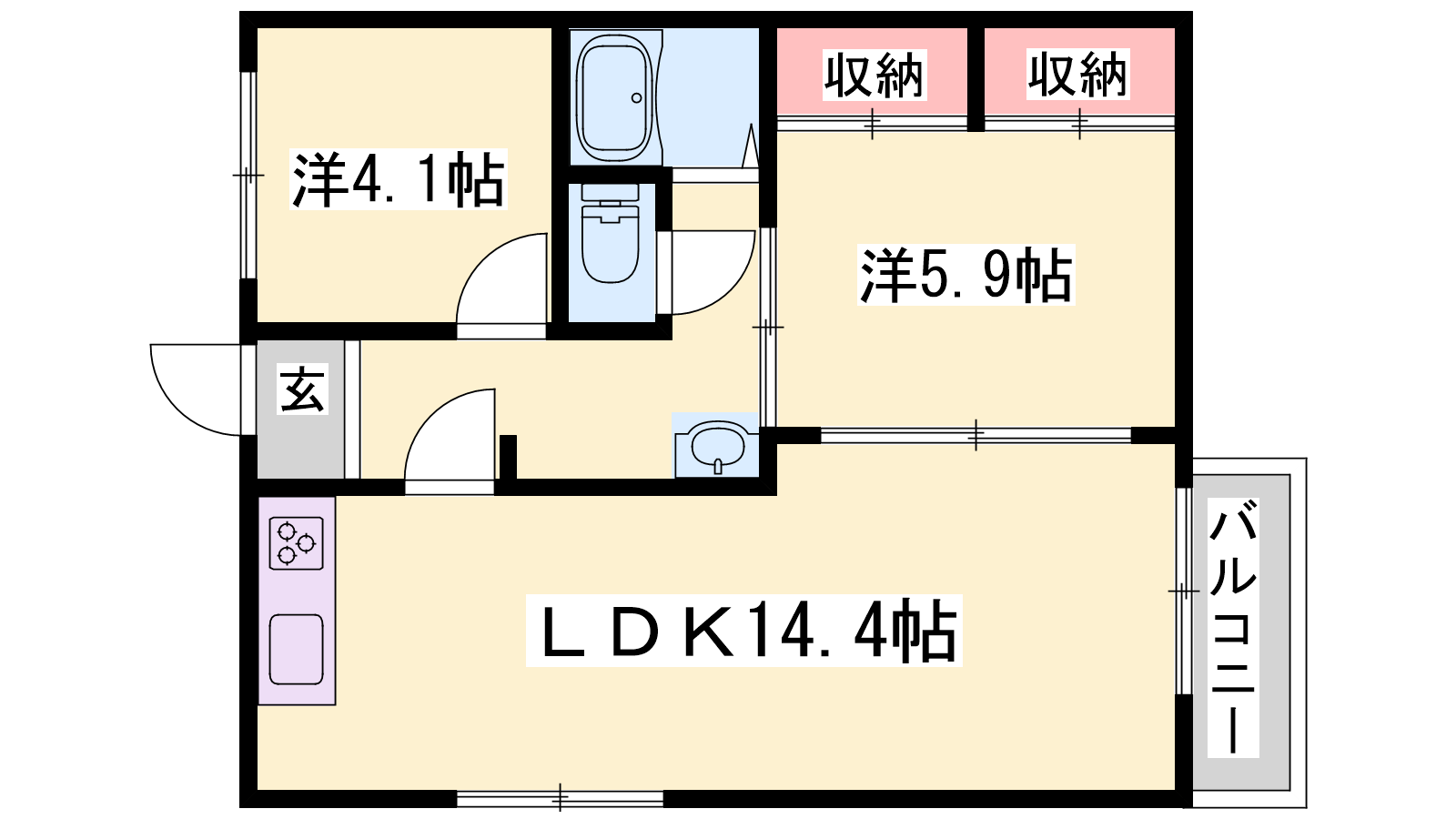 - LDK14.4帖、洋室5.9帖、洋室4.1帖