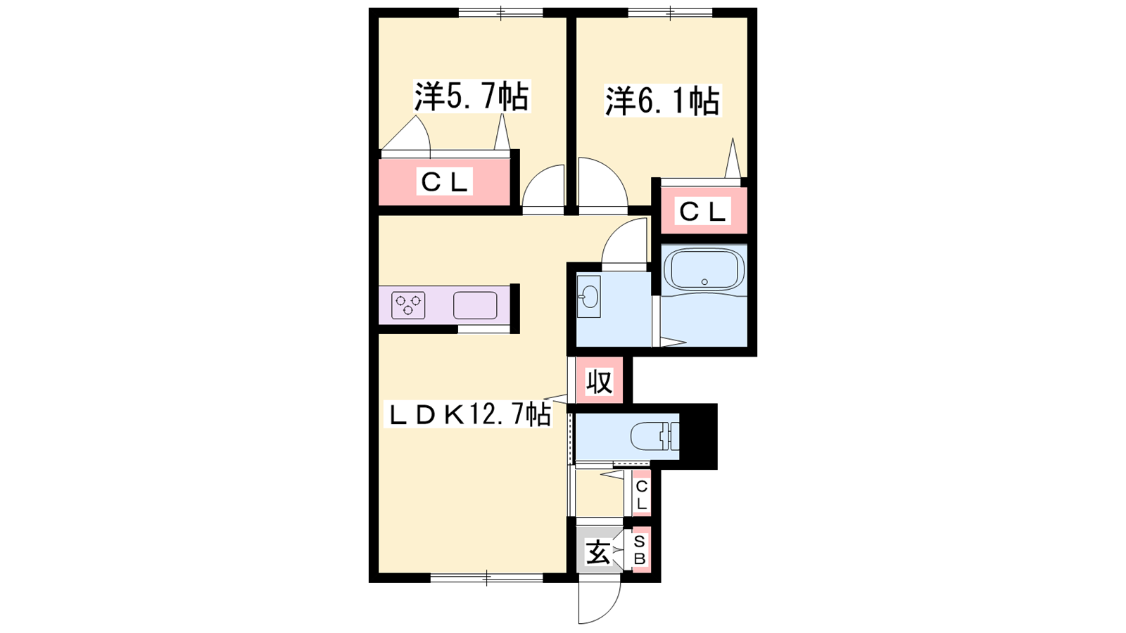 - LDK12.7帖、洋室6.1帖、洋室5.7帖