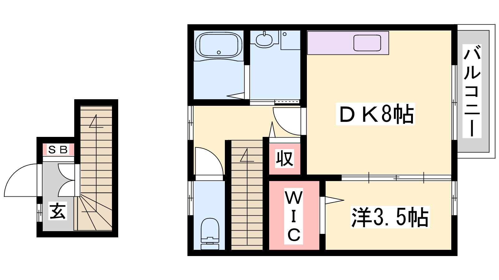 - DK8帖、洋室3.5帖
