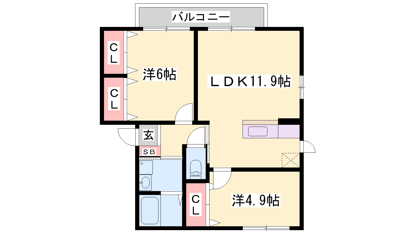 - LDK11.9帖、洋室6帖、洋室4.9帖