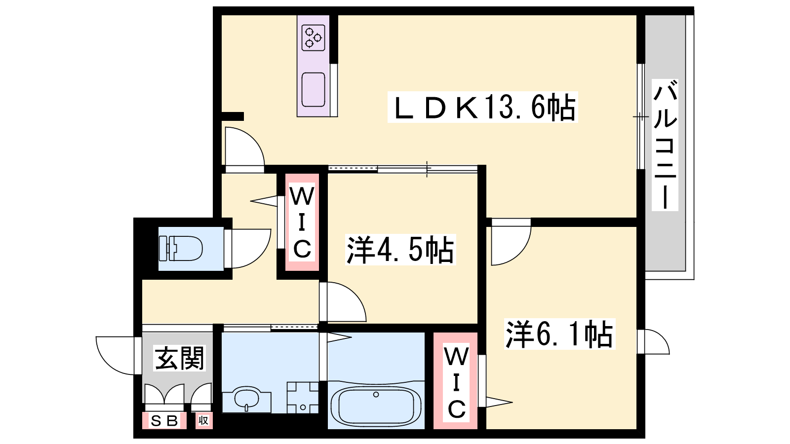 - LDK11.6帖、洋室6.1帖、洋室4.51帖