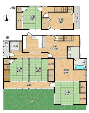 - LDK12.5帖、洋室6帖、和室4.5帖、和室6帖、和室6帖、洋室8帖、和室8帖