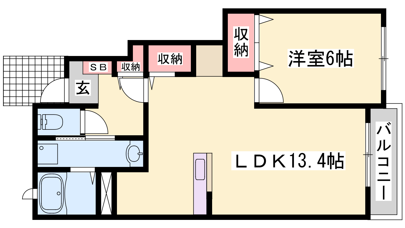 - LDK13.8帖、洋室6帖