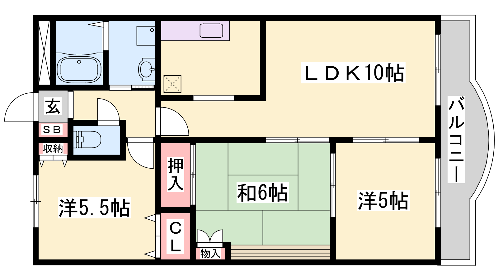 - LDK10帖、和室6帖、洋室5.5帖、洋室5帖