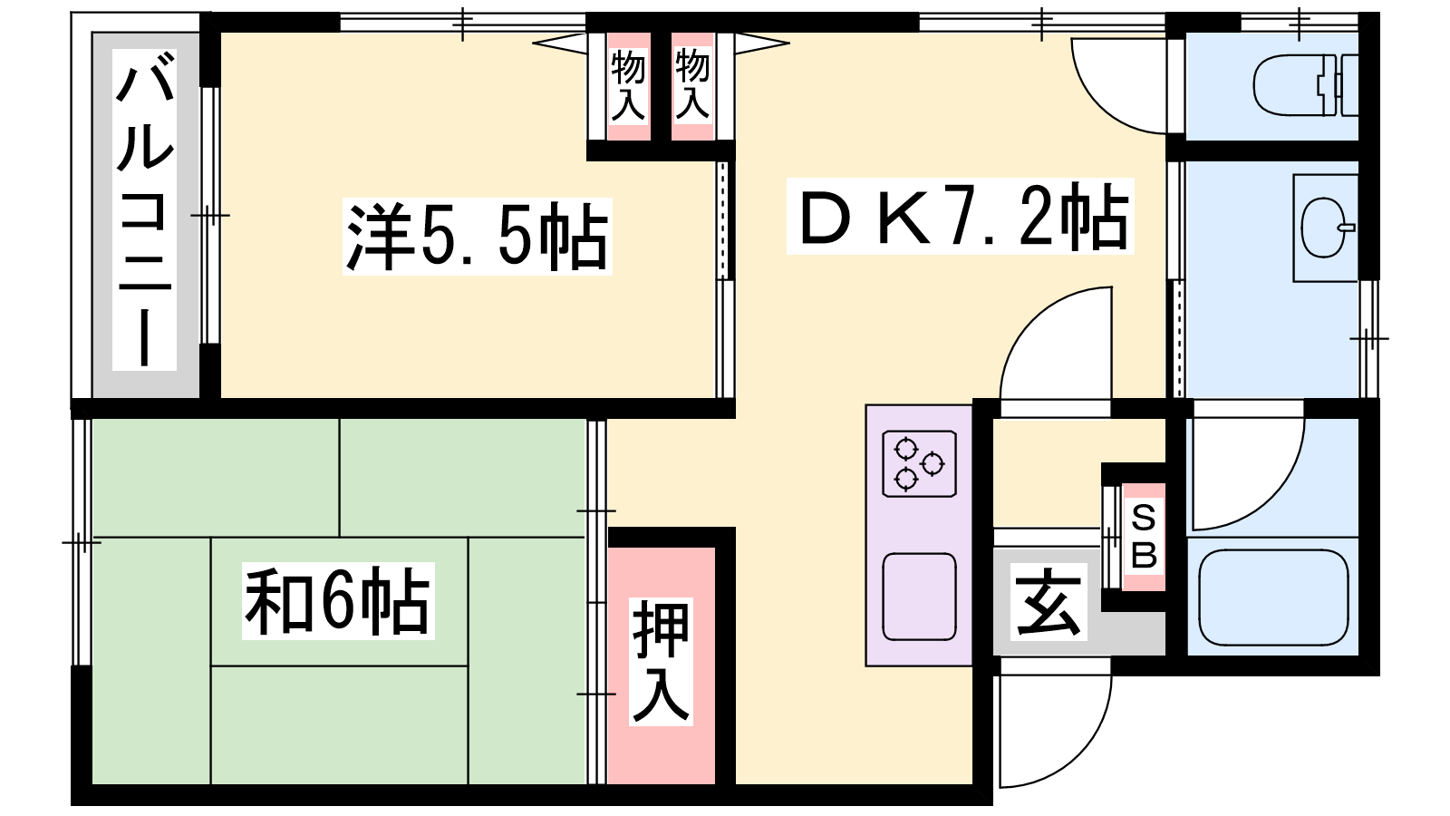 - DK7.2帖、洋室5.5帖、和室6帖