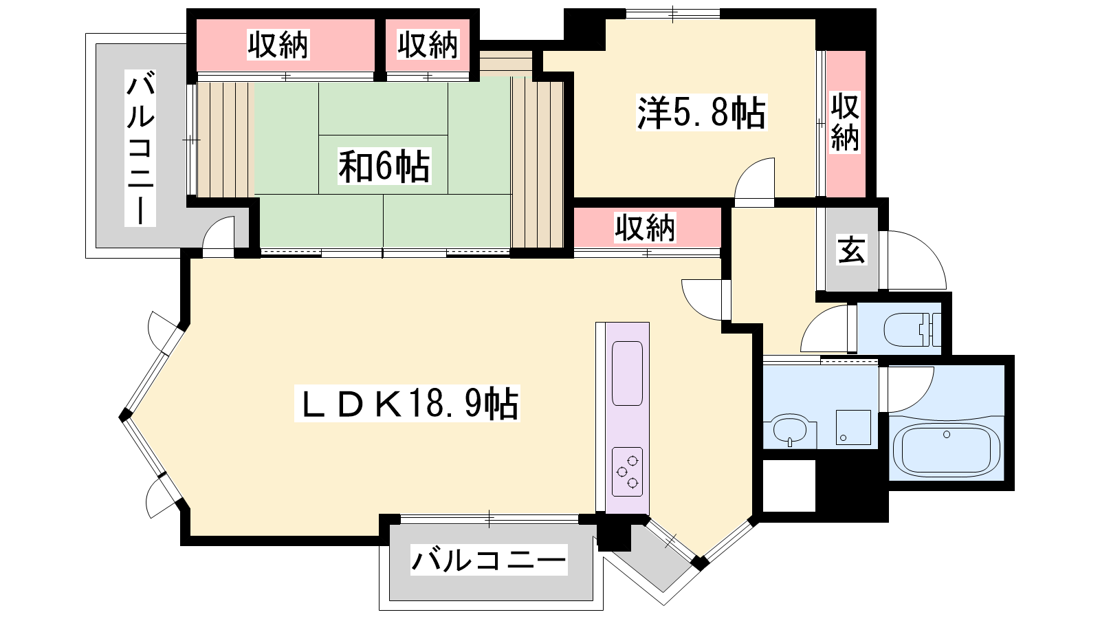 - LDK18.9帖、洋室5.8帖、和室6帖