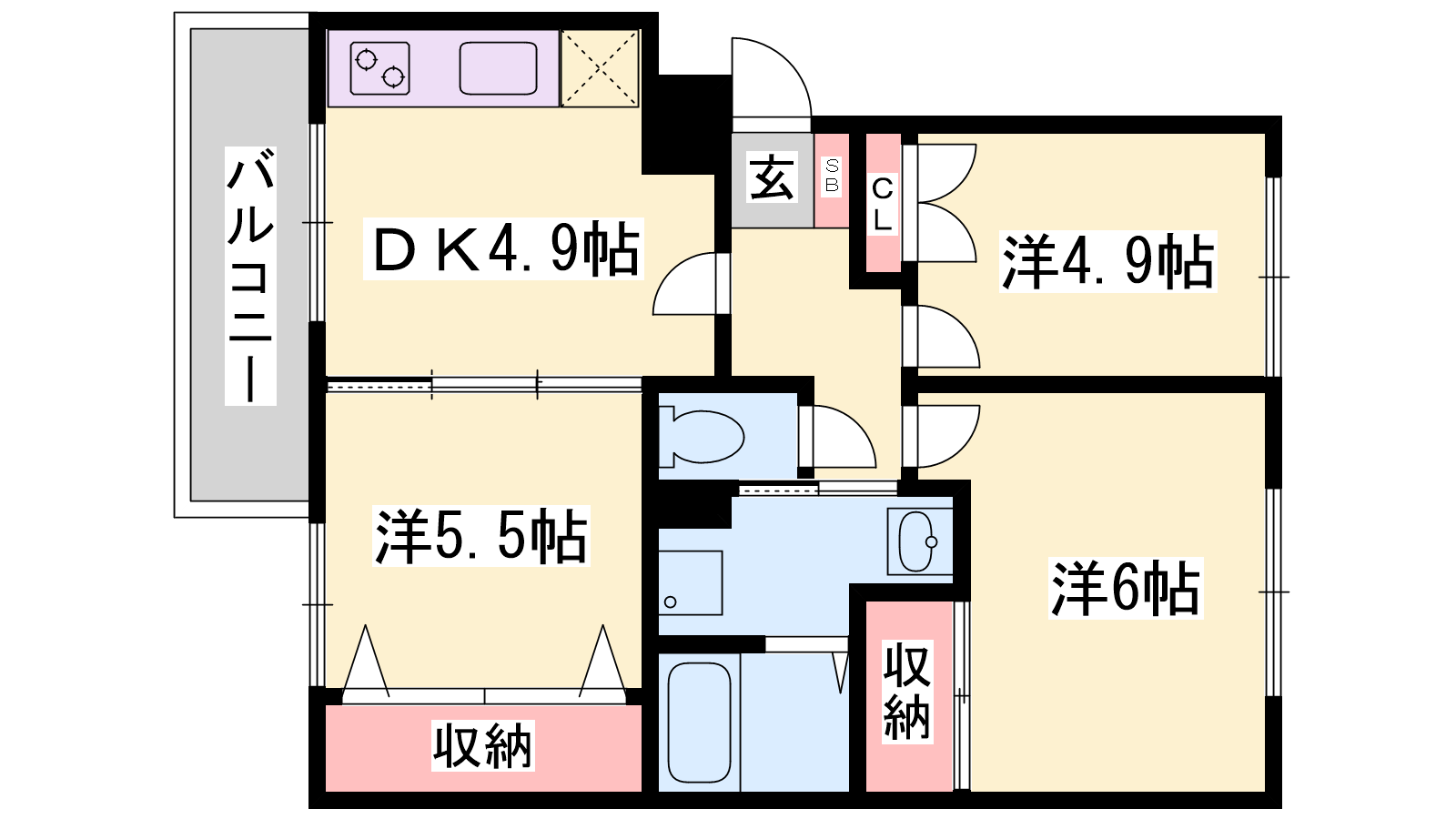 - DK4.9帖、洋室6帖、洋室5.5帖、洋室4.9帖