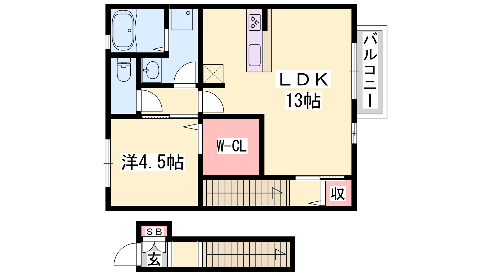 - LDK13帖、洋室4.5帖