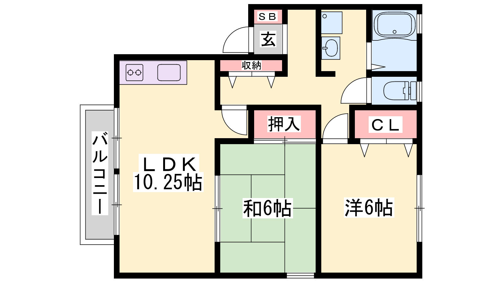 - LDK10.25帖、洋室6帖、和室6帖