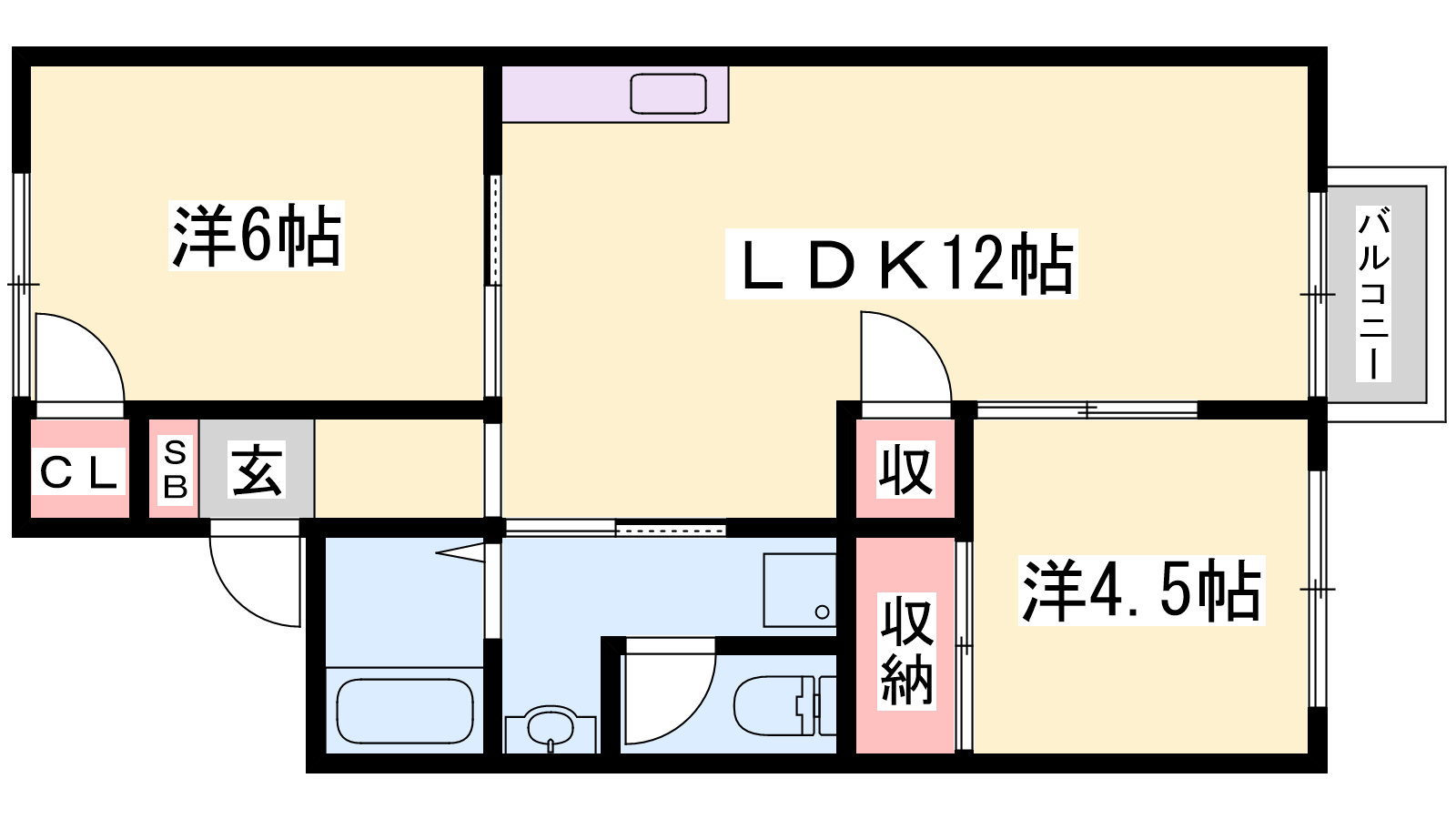 - LDK12帖、洋室6帖、洋室4.5帖