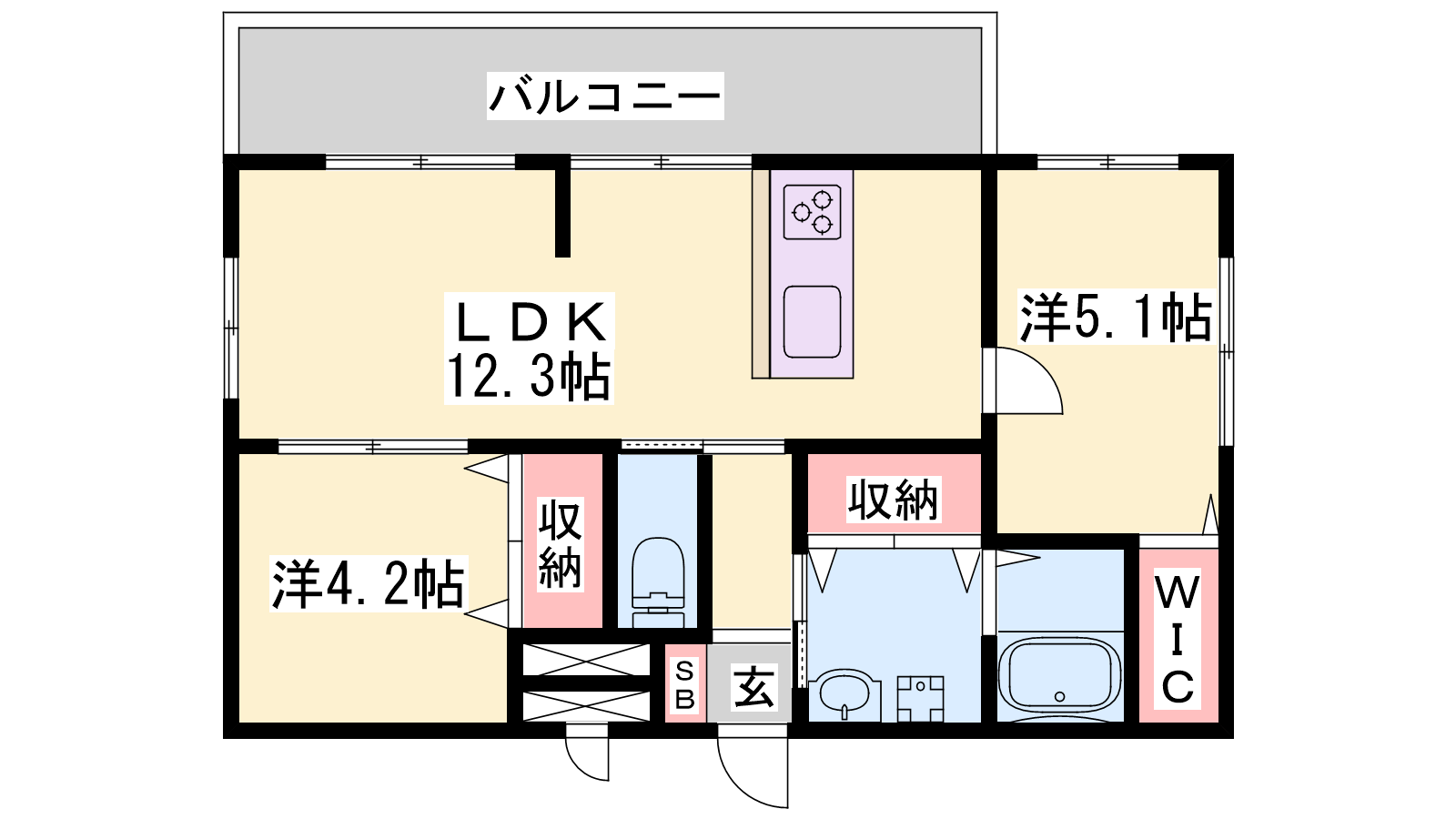 - LDK12.3帖、洋室5.1帖、洋室4.2帖