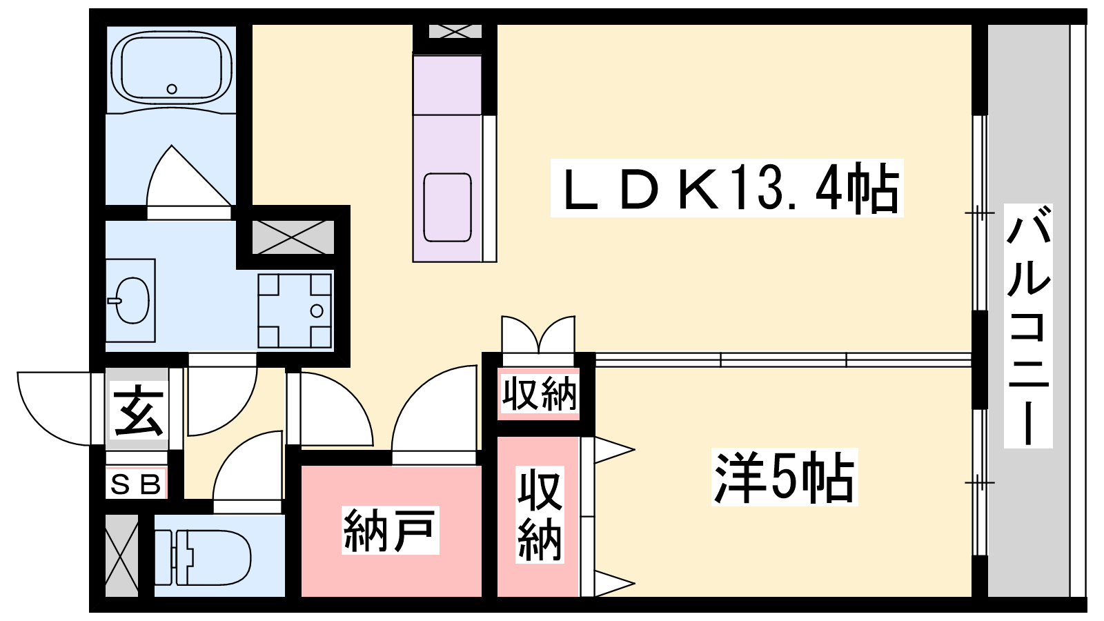 - LDK13.4帖、洋室5帖