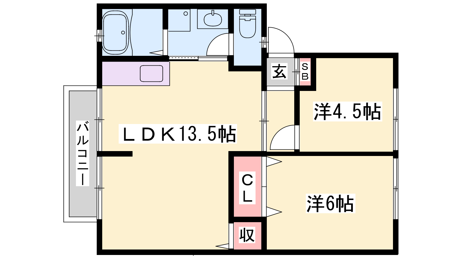 - LDK13.5帖、洋室6帖、洋室4.5帖