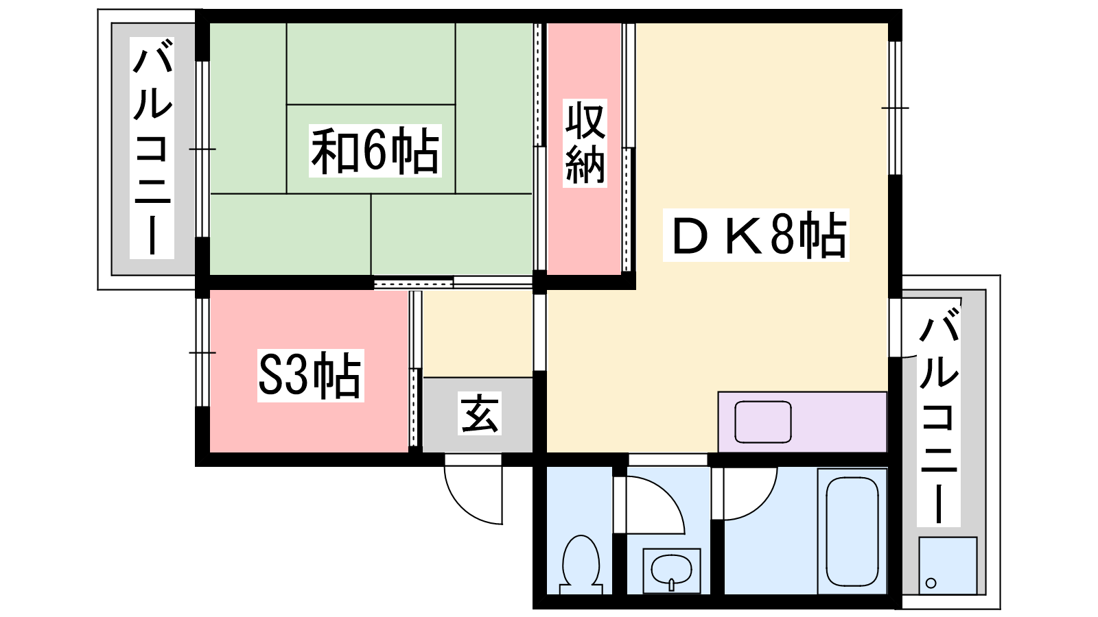 - DK8帖、S3帖、和室6帖