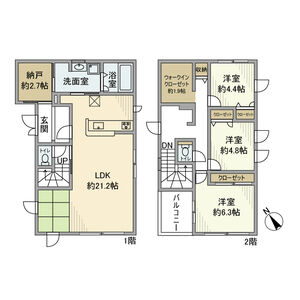 - LDK21.2帖、洋室6.3帖、洋室4.8帖、洋室4.4帖