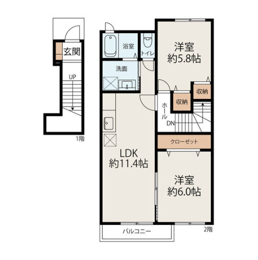 - LDK11.4帖、洋室6帖、洋室5.8帖