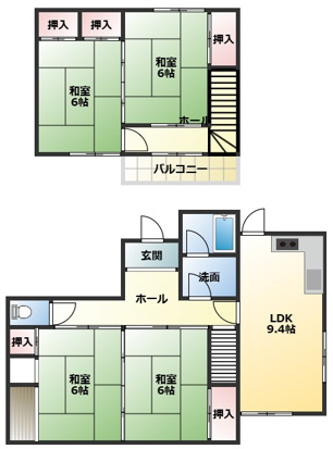 - LDK9.4帖、和室6帖、和室6帖、和室6帖、和室6帖、和室4.5帖