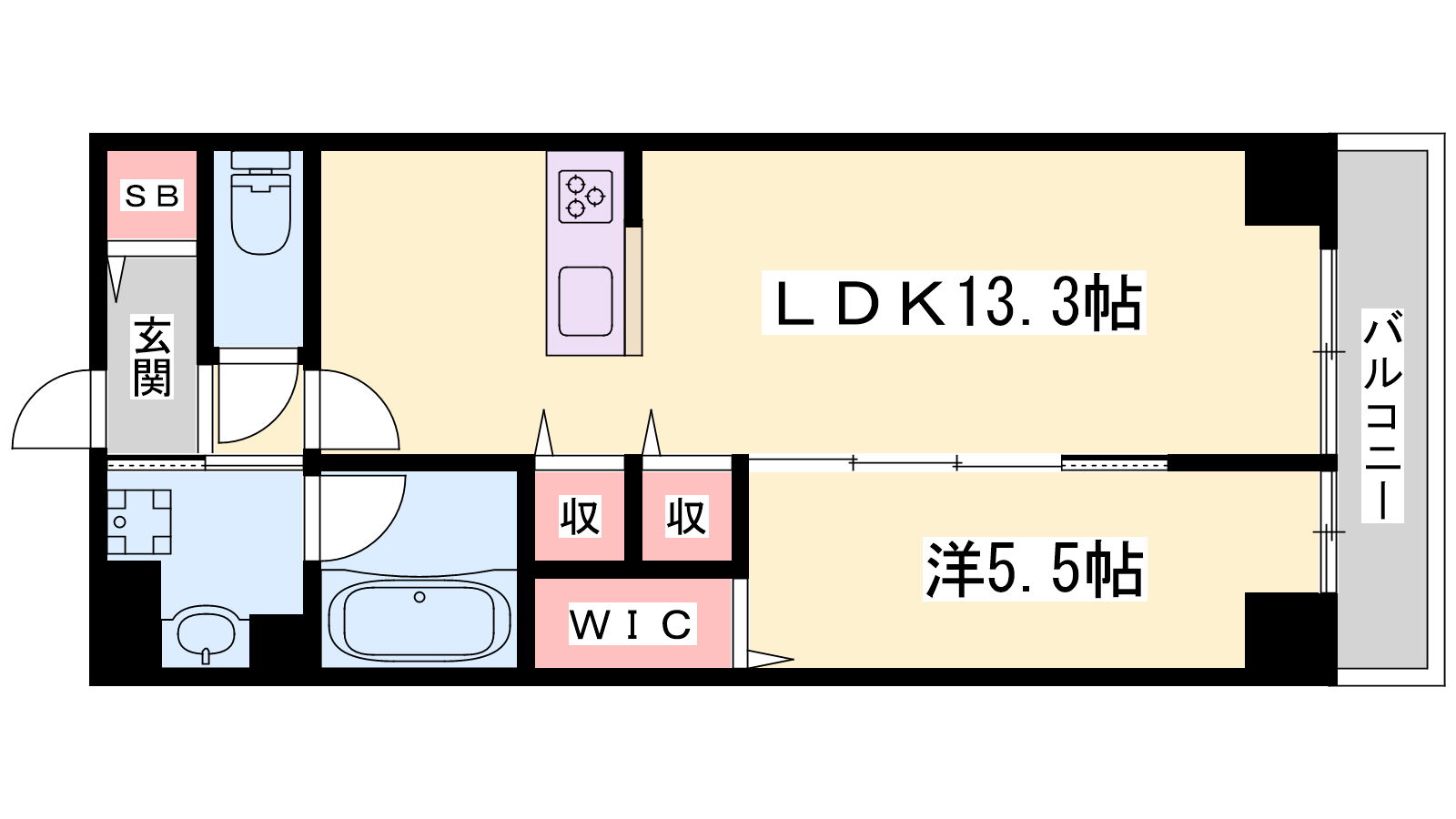 - LDK13.3帖、洋室5.5帖