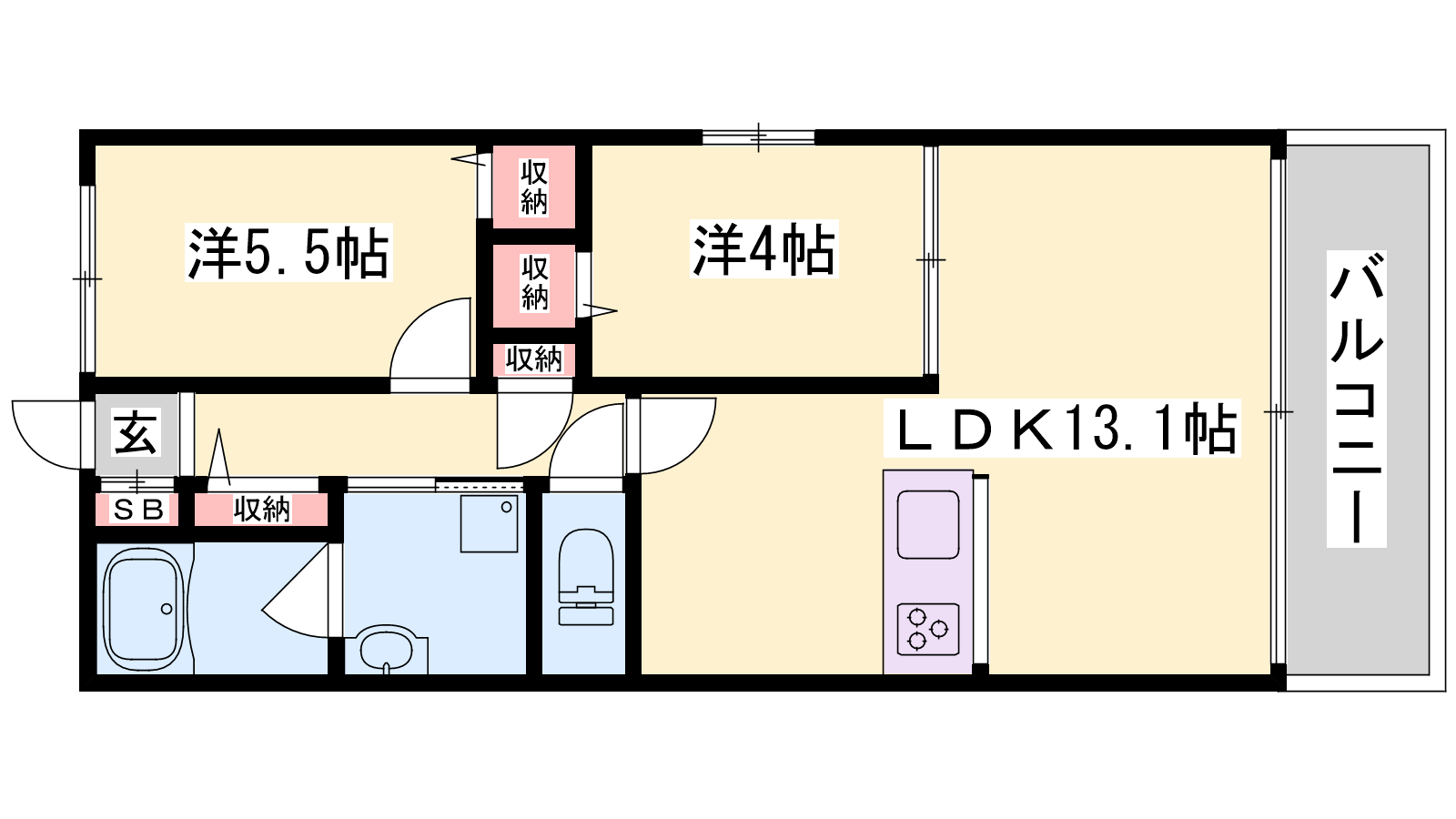 - LDK13.1帖、洋室5.5帖、洋室4帖