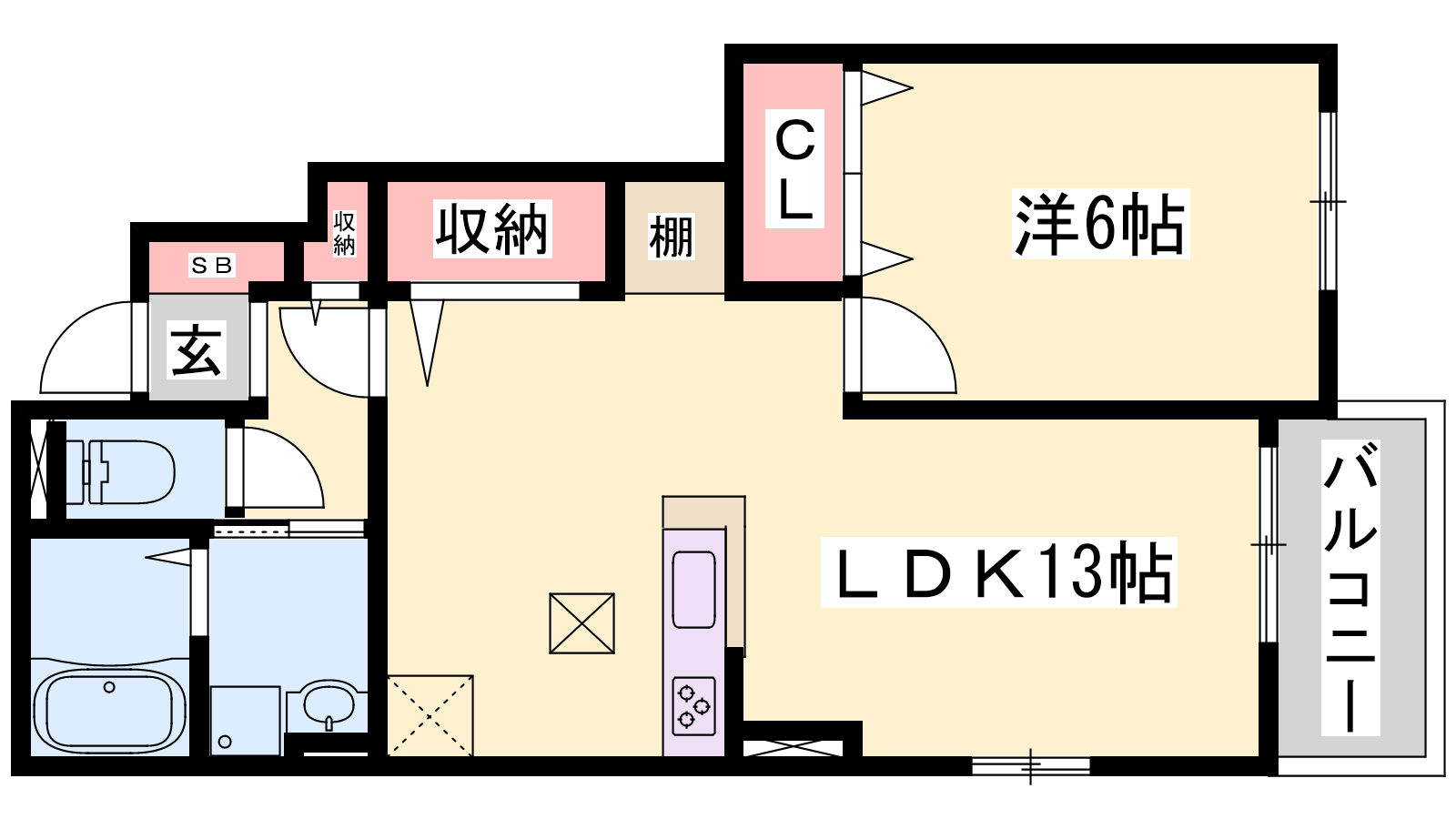 - LDK13帖、洋室6帖