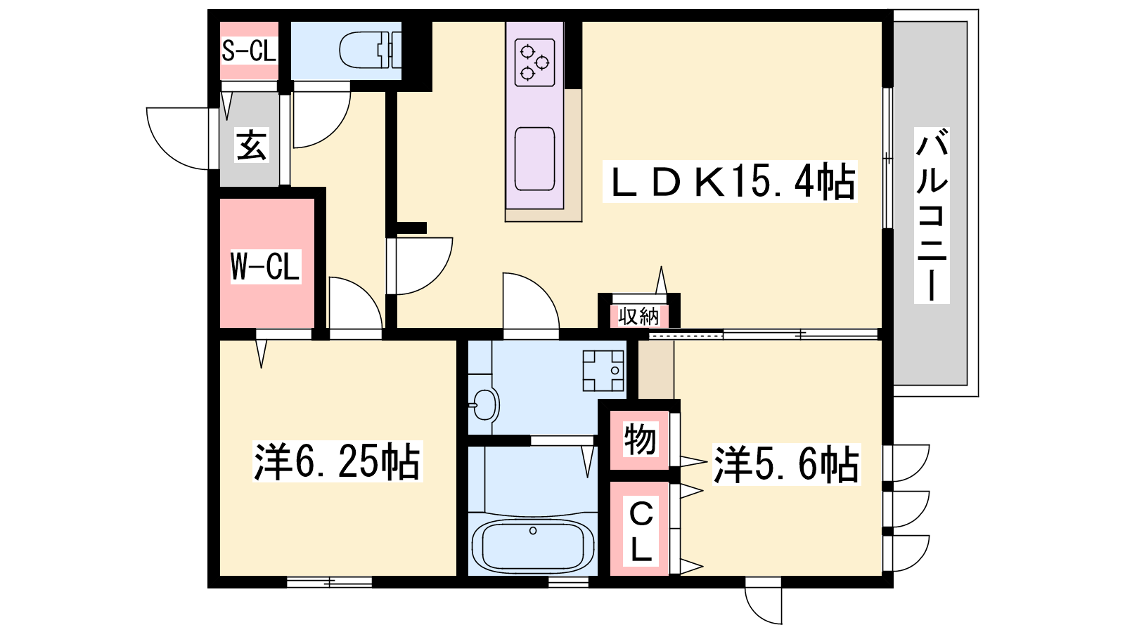 - LDK15.4帖、洋室6.25帖、洋室5.61帖