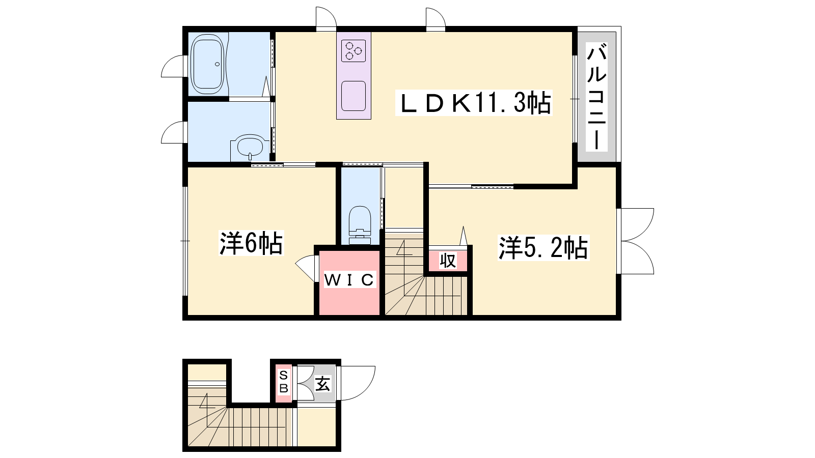 - LDK11.3帖、洋室6帖、洋室5.2帖