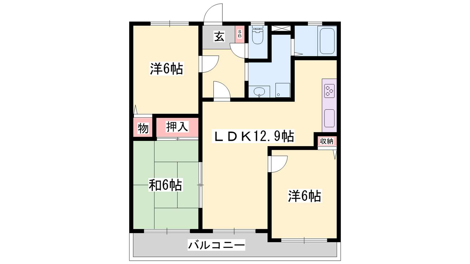 - LDK12.9帖、洋室6帖、洋室5帖、和室6帖