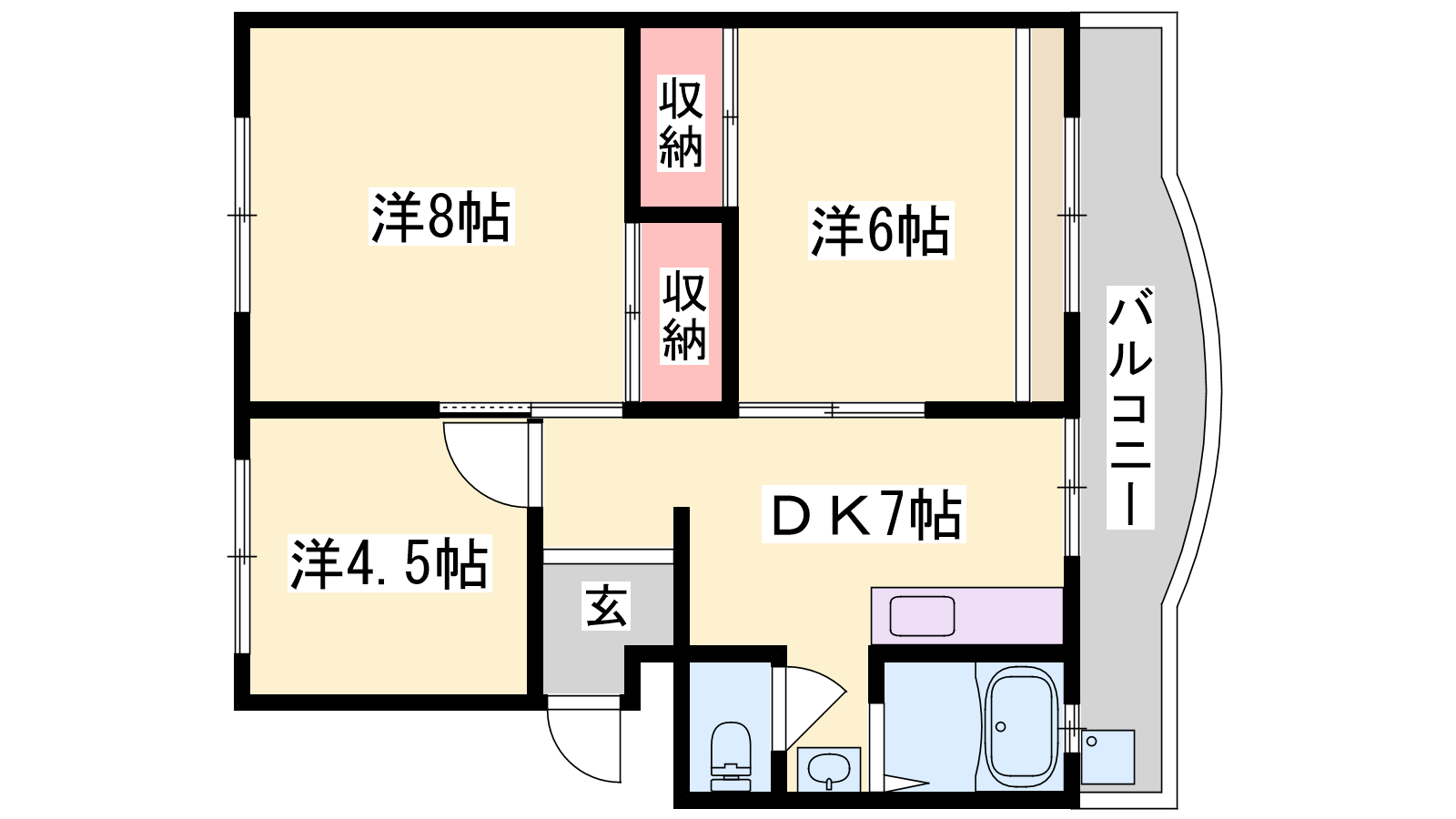 - DK7帖、洋室8帖、洋室6帖、洋室4.5帖