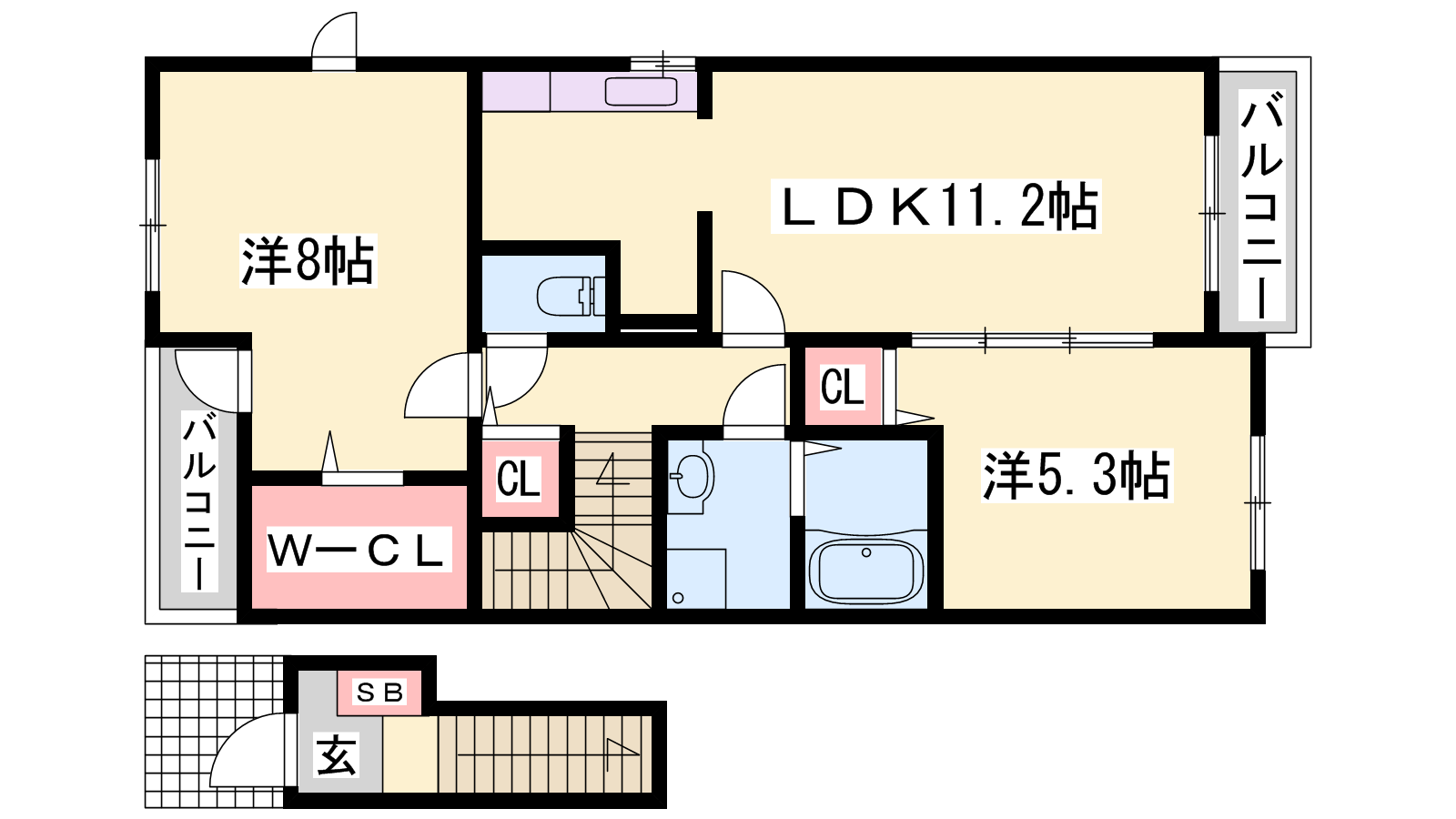 - LDK11.2帖、洋室8帖、洋室5.3帖