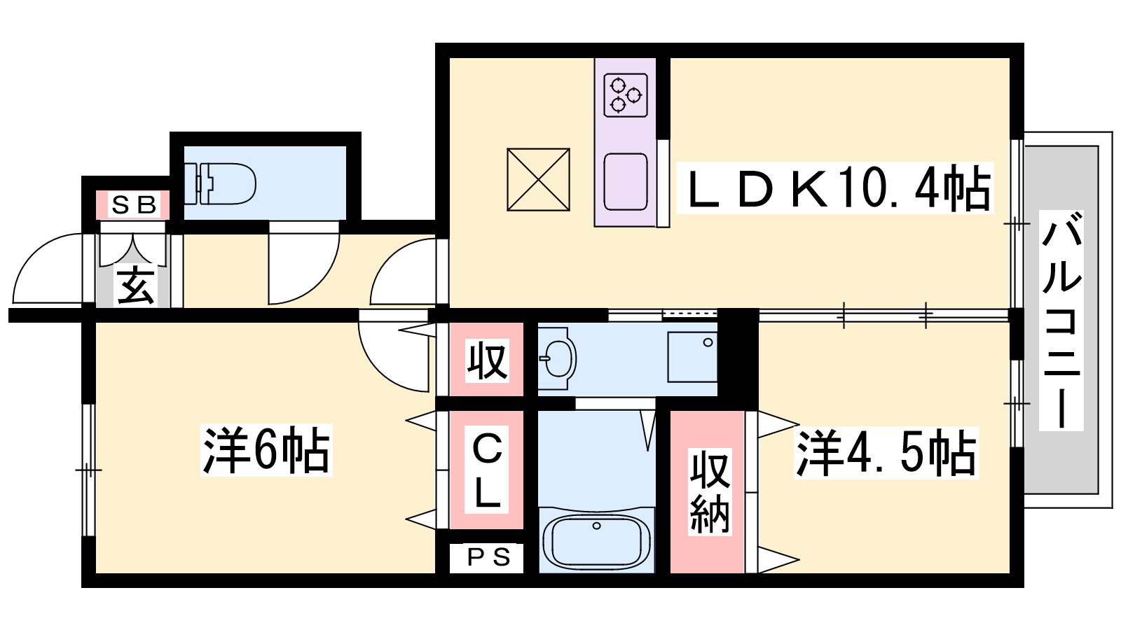 - LDK10.4帖、洋室6帖、洋室4.5帖
