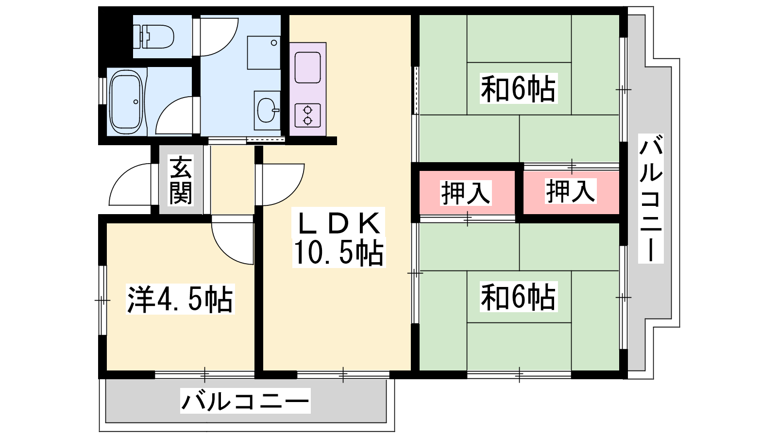 - LDK10.5帖、洋室4.5帖、和室6帖、和室6帖