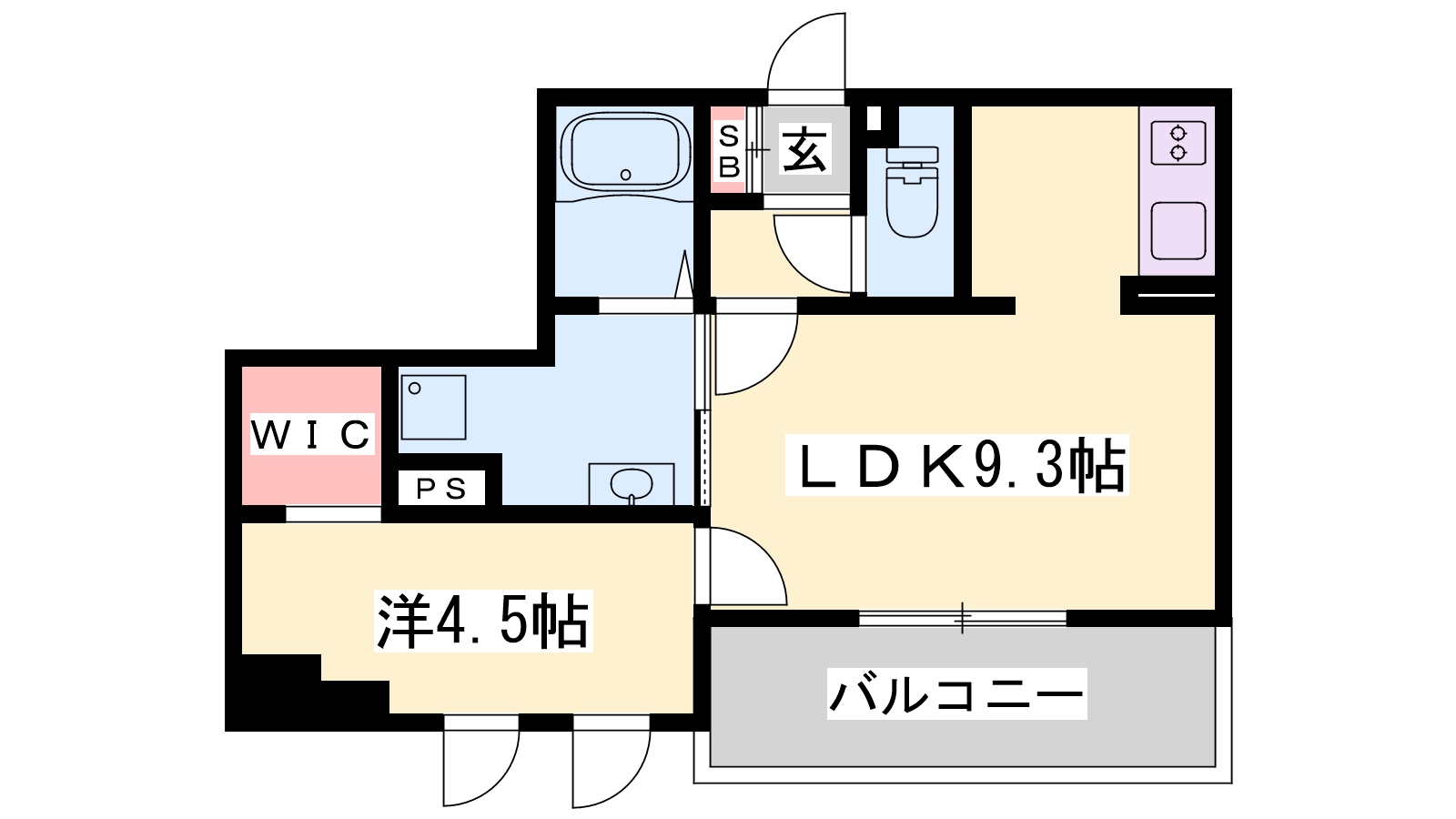 - LDK9.3帖、洋室4.5帖