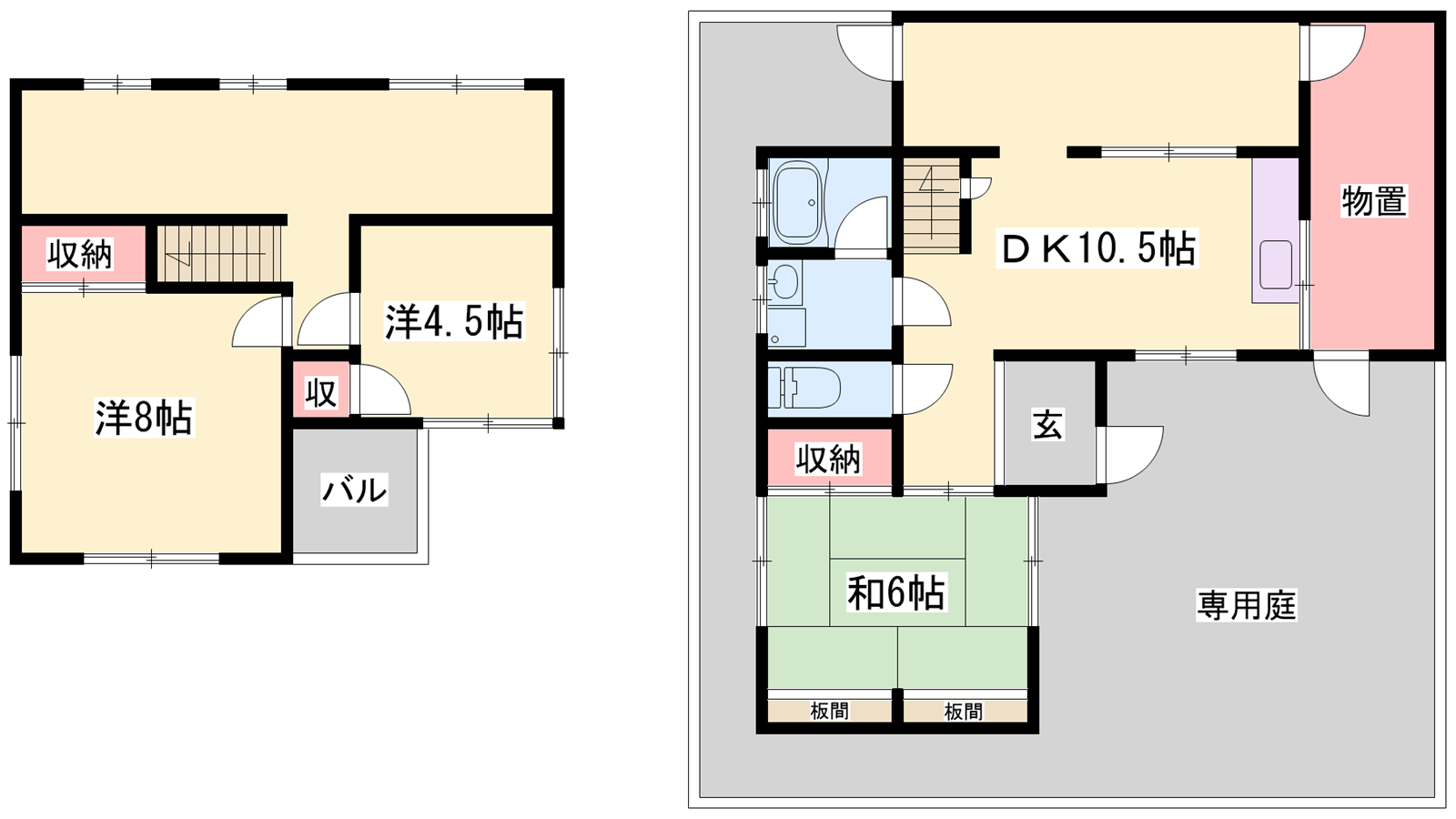 - DK10.5帖、洋室8帖、洋室4.5帖、和室6帖