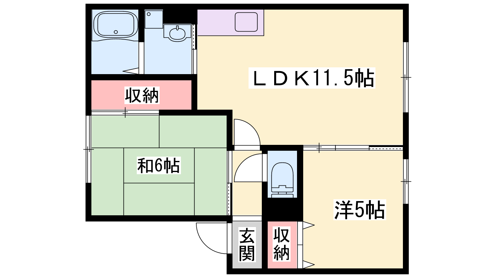 - LDK11.5帖、洋室5帖、和室6帖