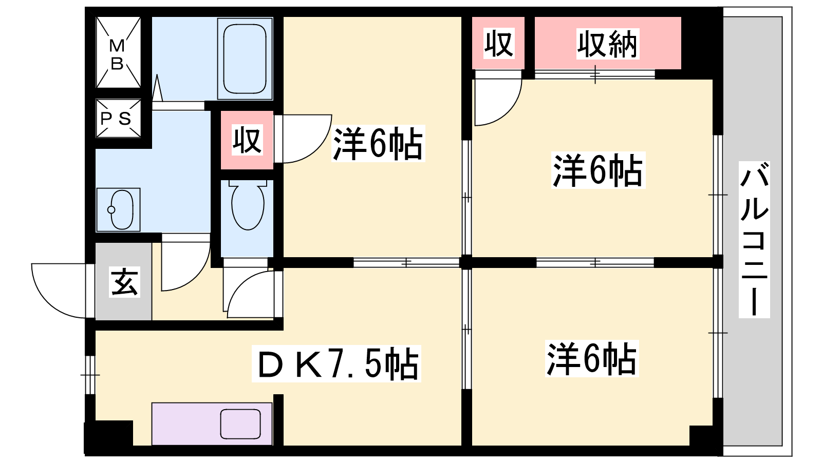- DK7.5帖、洋室6帖、洋室6帖、洋室6帖