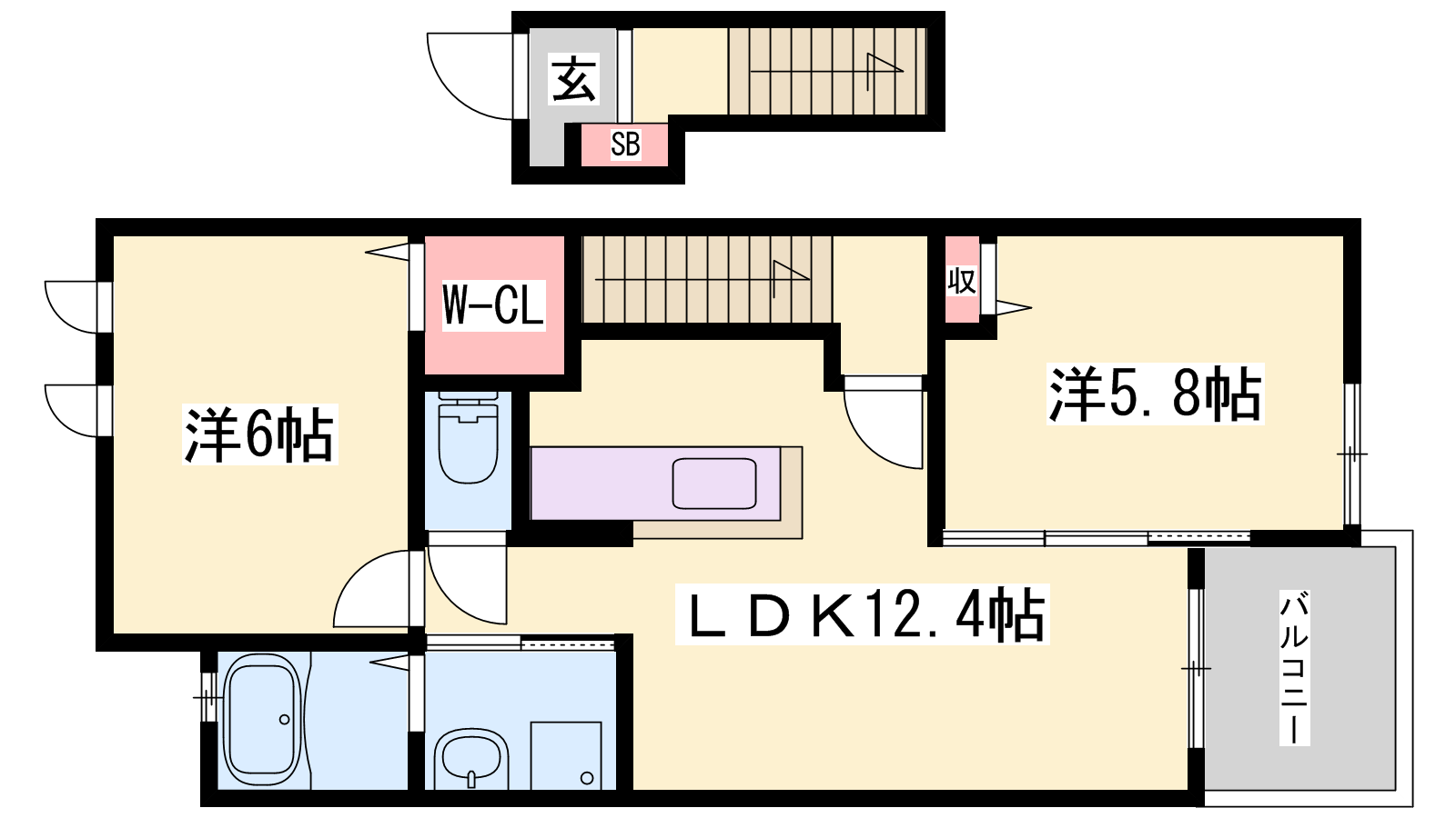 - LDK12.4帖、洋室6帖、洋室5.8帖