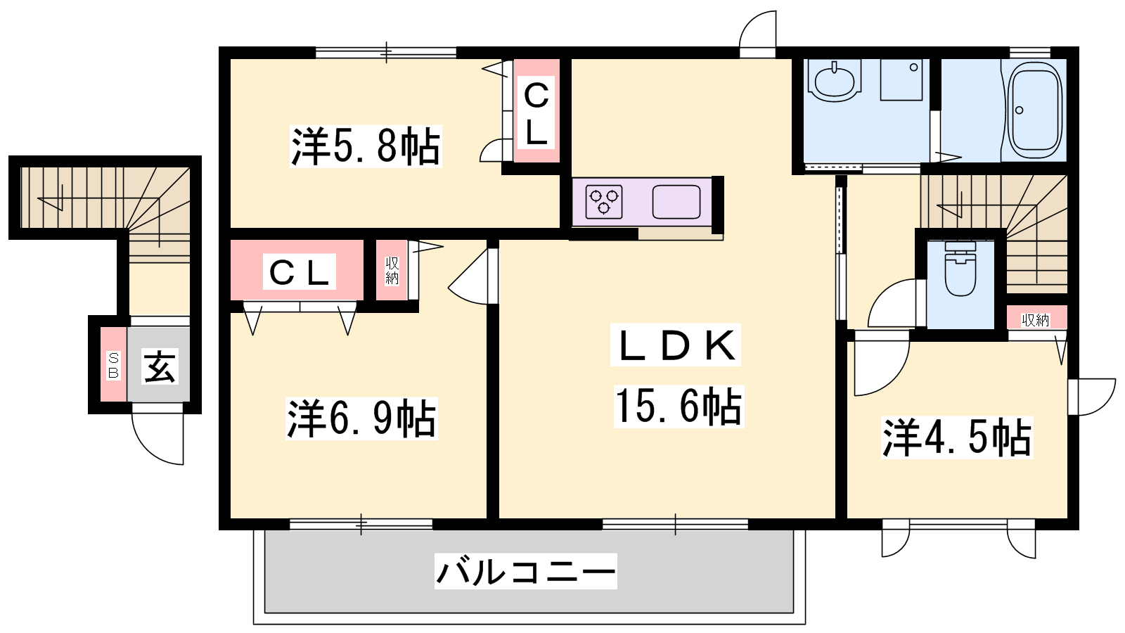 - LDK15.5帖、洋室6.8帖、洋室5.8帖、洋室4.5帖