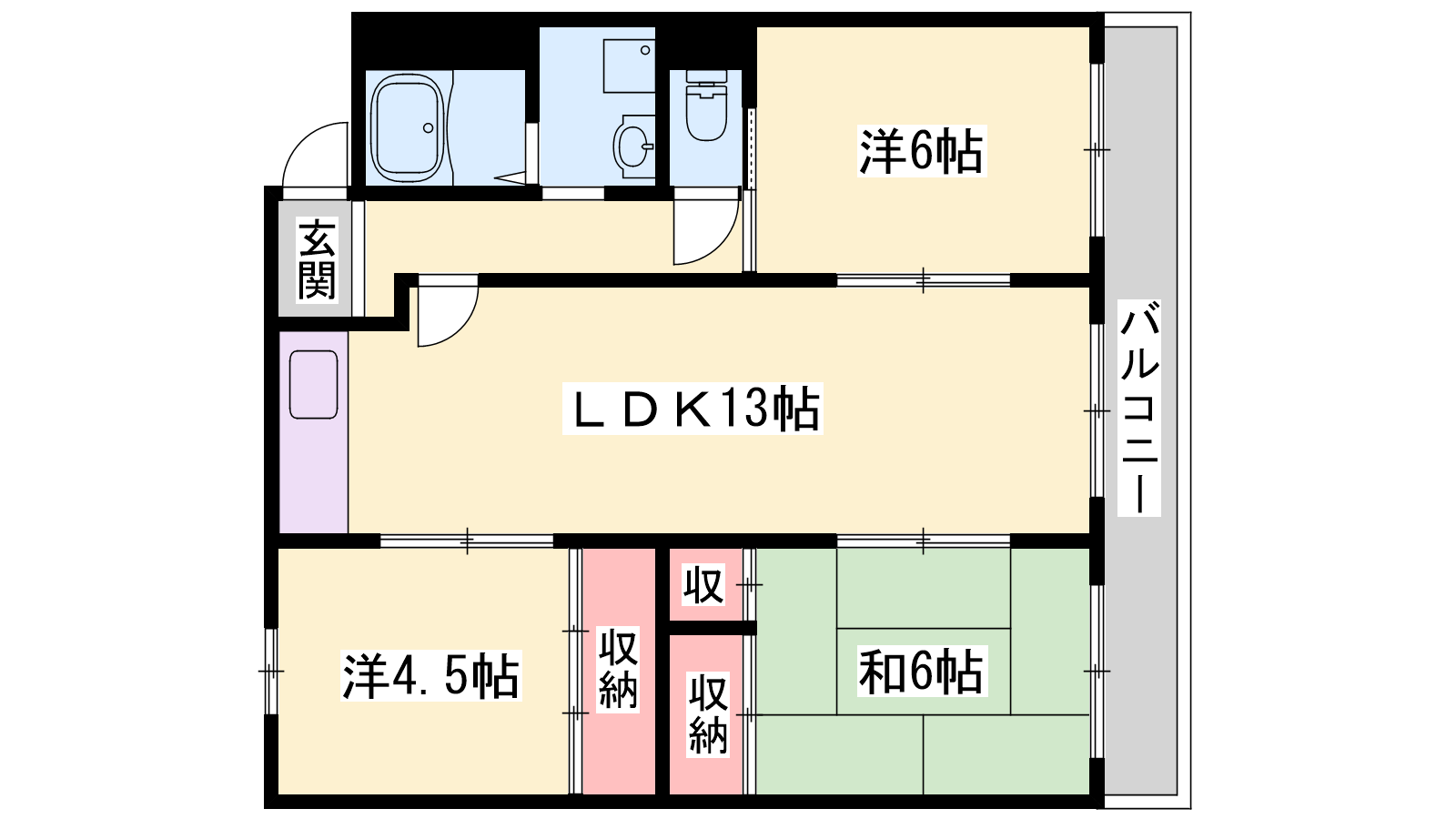 - LDK13帖、洋室6帖、和室6帖、洋室4.5帖