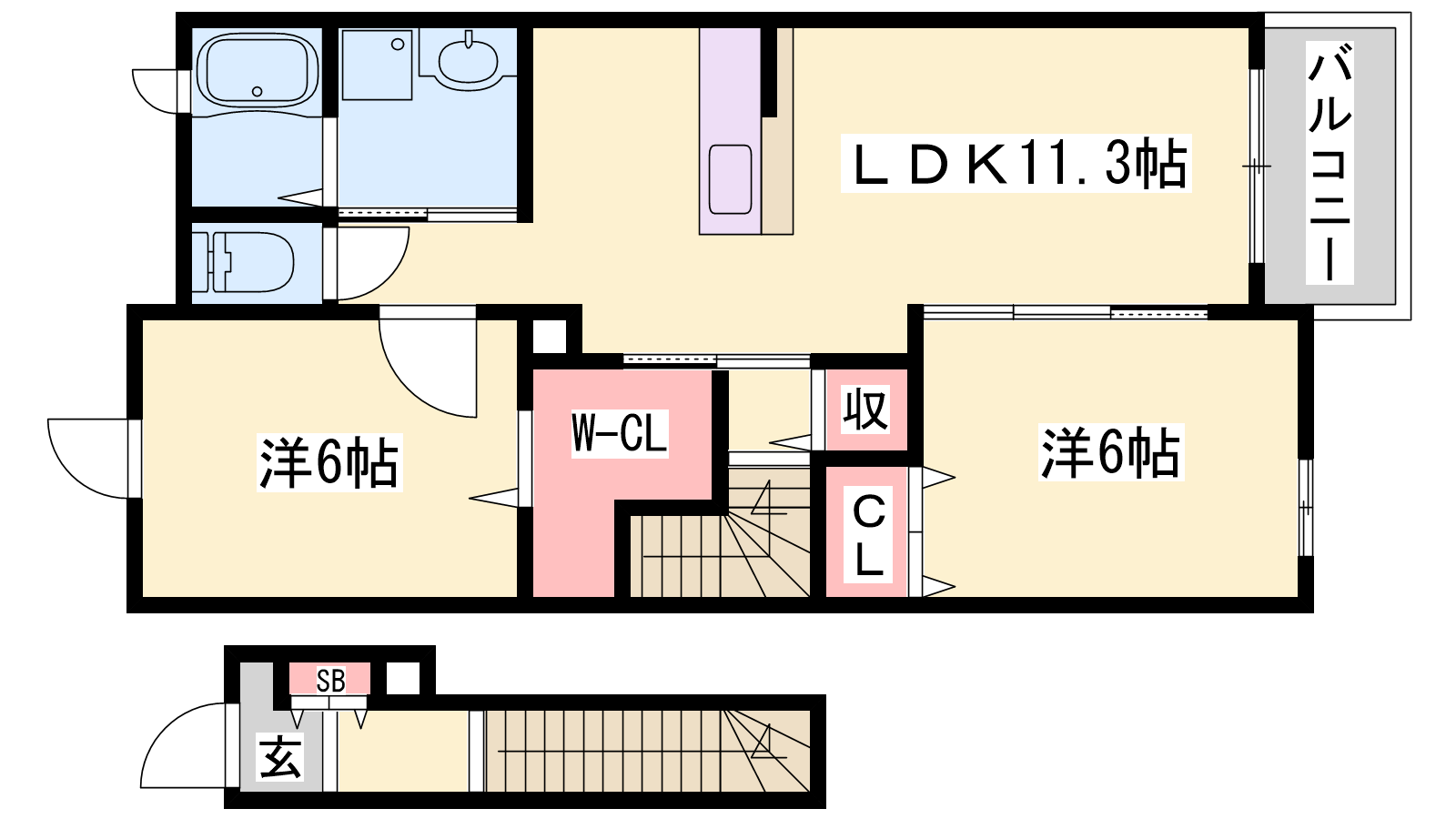 - LDK11.3帖、洋室6帖、洋室6帖