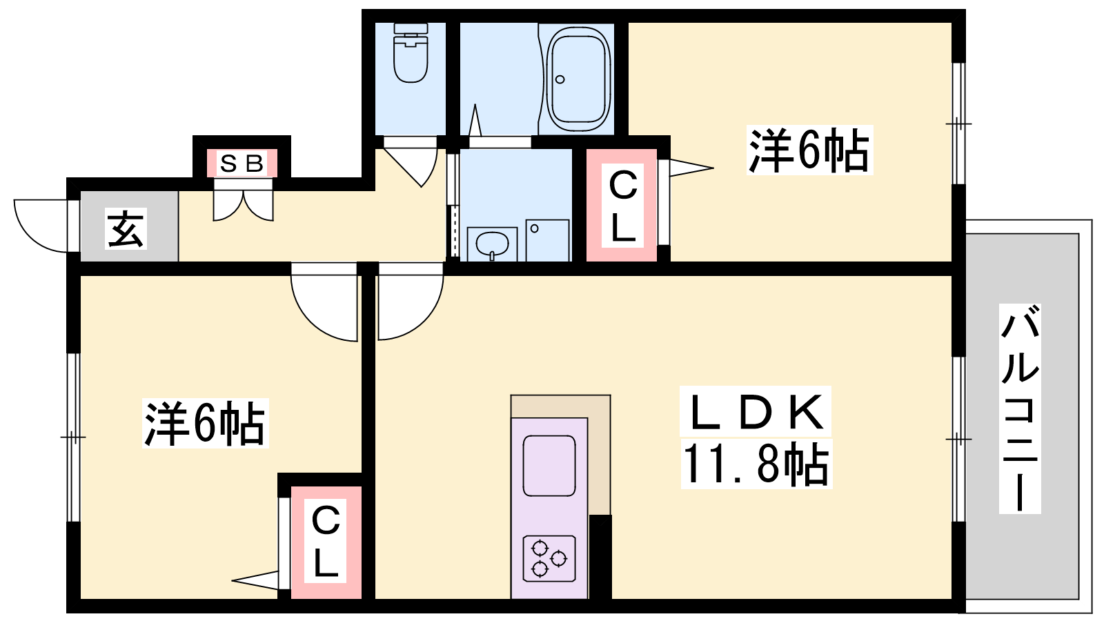 - LDK11.8帖、洋室6帖、洋室6帖