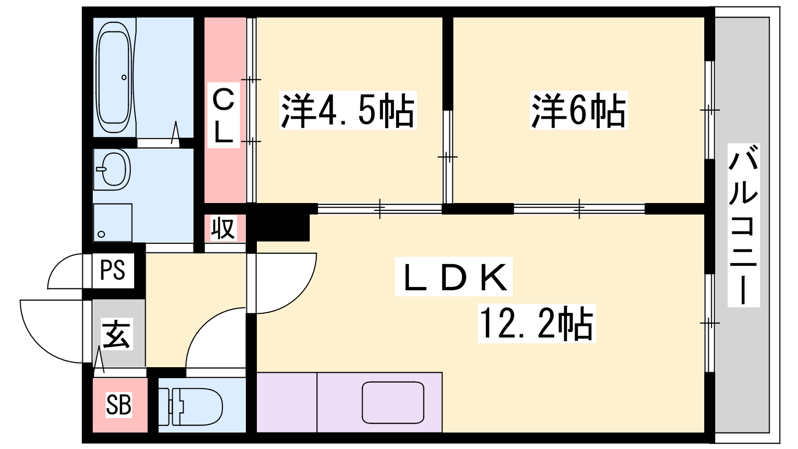 - LDK12.2帖、洋室6帖、洋室4.5帖