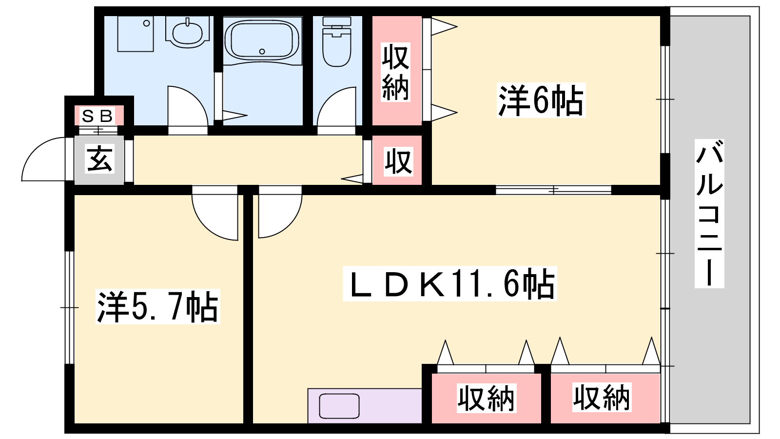 - LDK11.6帖、洋室6帖、洋室5.7帖