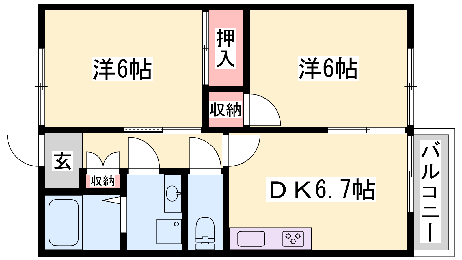 - DK7帖、洋室6帖、洋室6帖