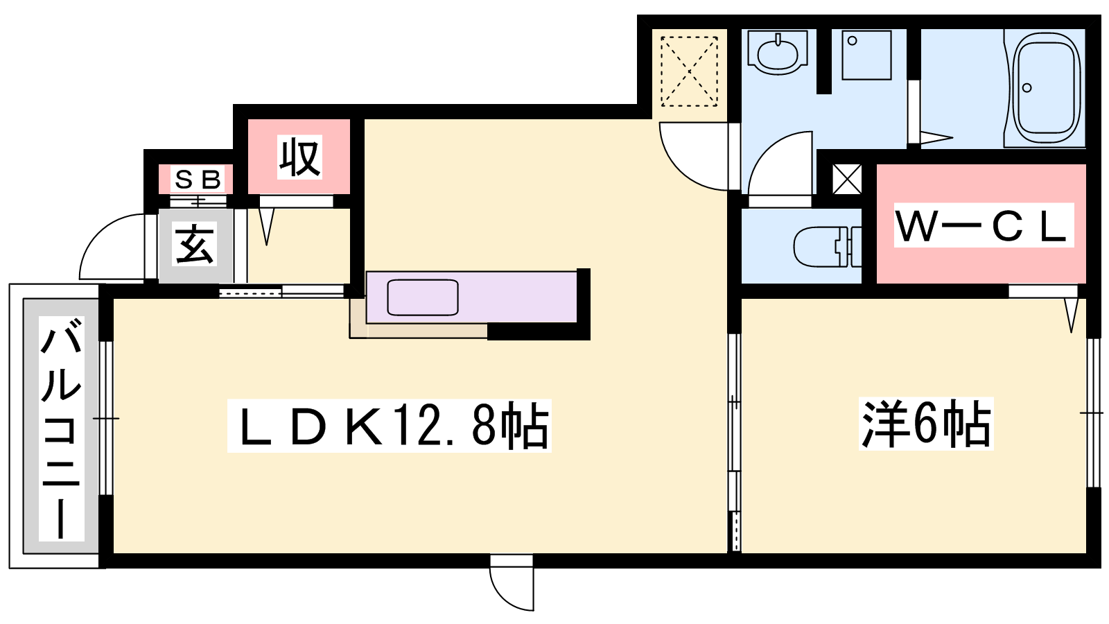 - LDK12.8帖、洋室6帖