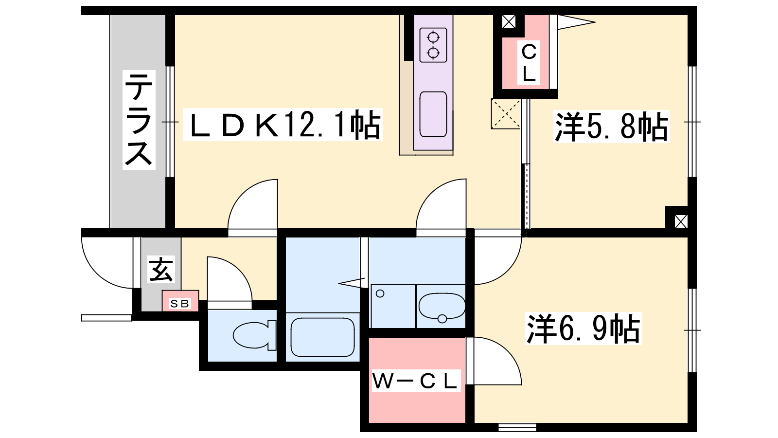 - LDK12.1帖、洋室6.9帖、洋室5.8帖