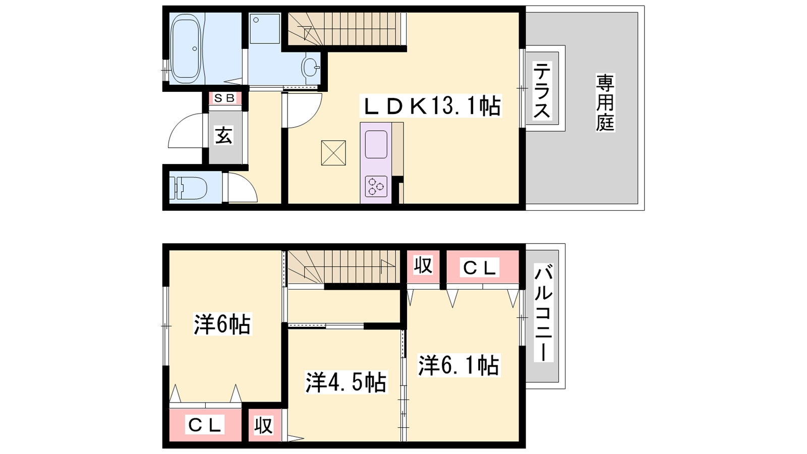 - LDK13.1帖、洋室6.1帖、洋室6帖、洋室4.5帖