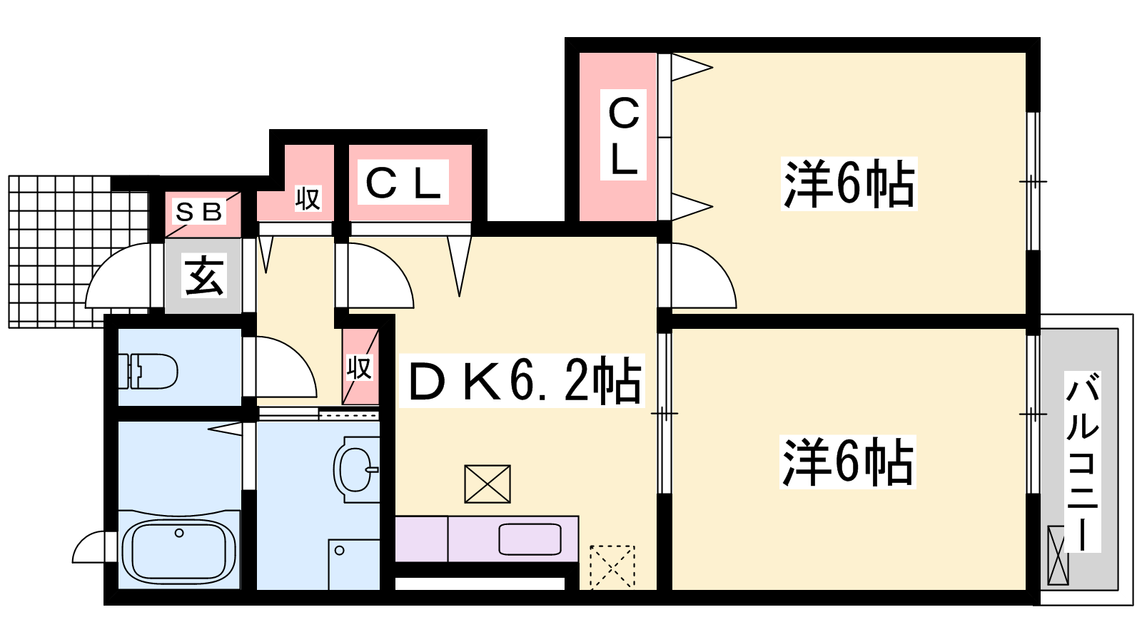 - DK6.2帖、洋室6帖、洋室6帖
