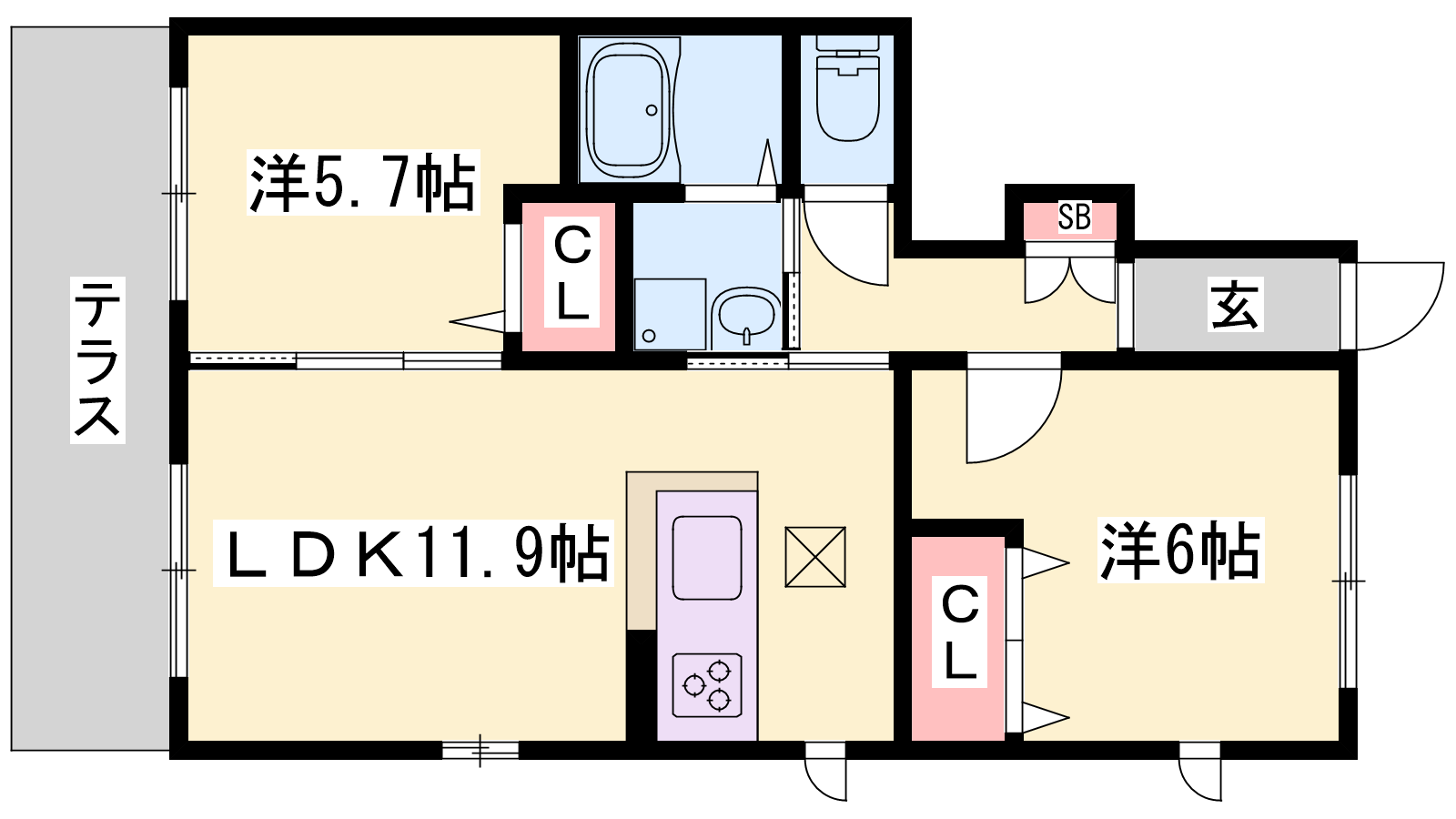 - LDK11.9帖、洋室6帖、洋室5.7帖